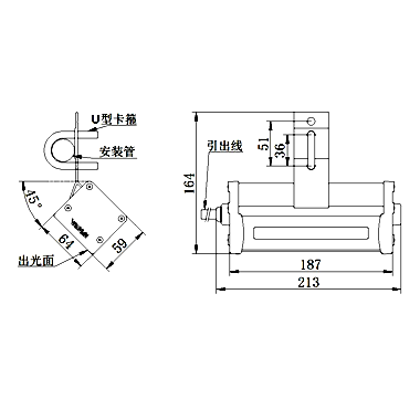 燈罩:鋼化玻璃 底座:鋁型材 U型卡箍:不銹鋼304